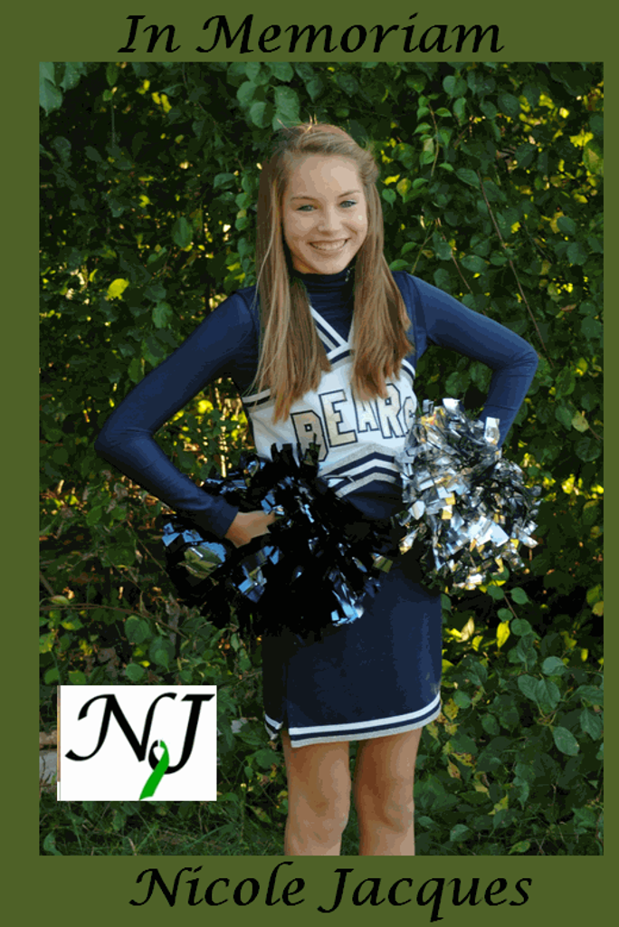 It is with great sadness that we announce the tragic loss of one of our own, Nicole Jacques. Nicole passed away the morning of May 29, 2014 after a difficult battle with a rare form of liver cancer, she was 14 years old. An eighth grade student at Hudson Memorial Middle School, Nicole touched the lives of many through her school affiliation and her active participation in our cheer organization and tumbled at A2 Gymnastics.  She was a true Bears Cheerleader – dedicated and committed to the sport she loved.